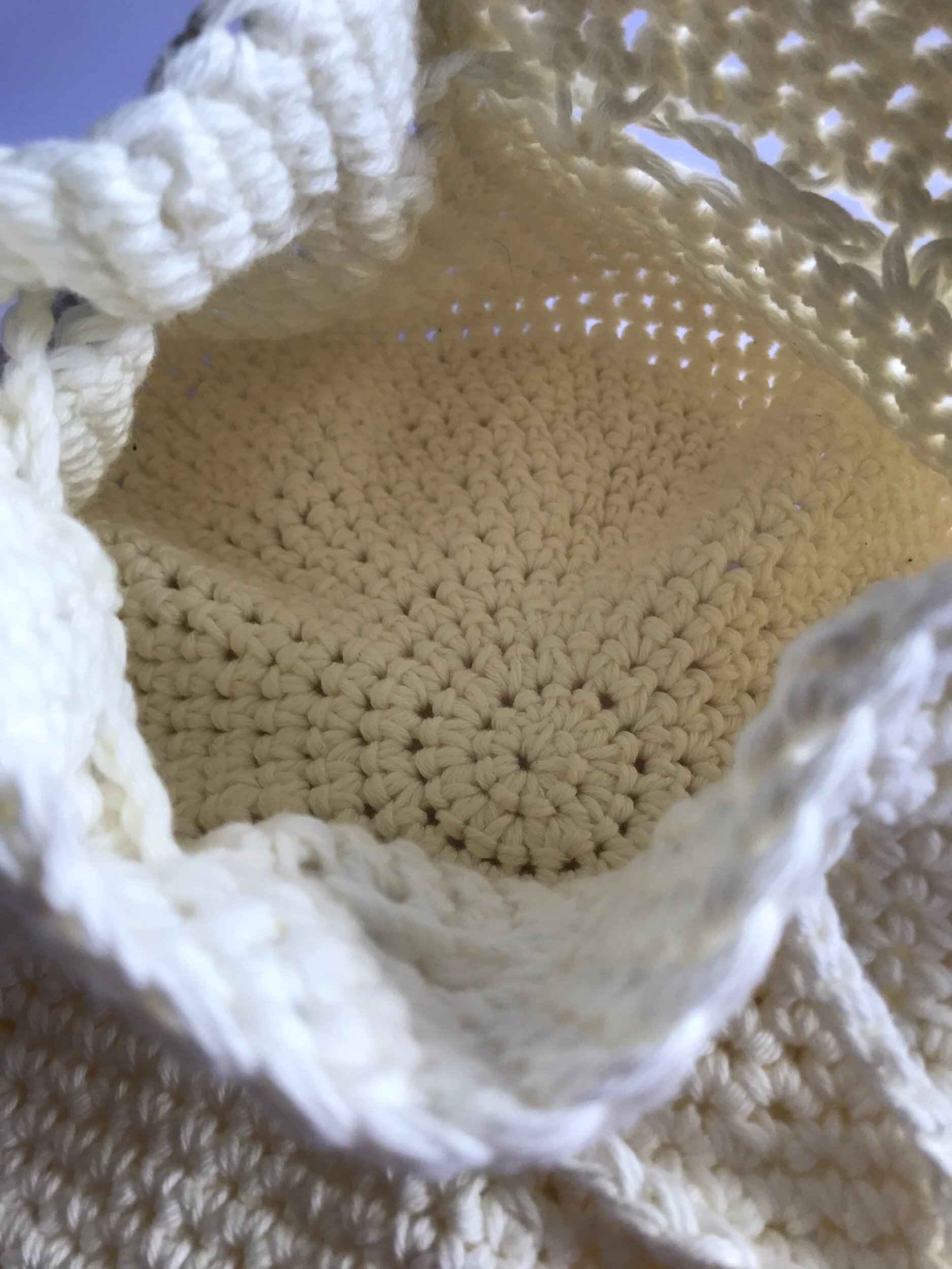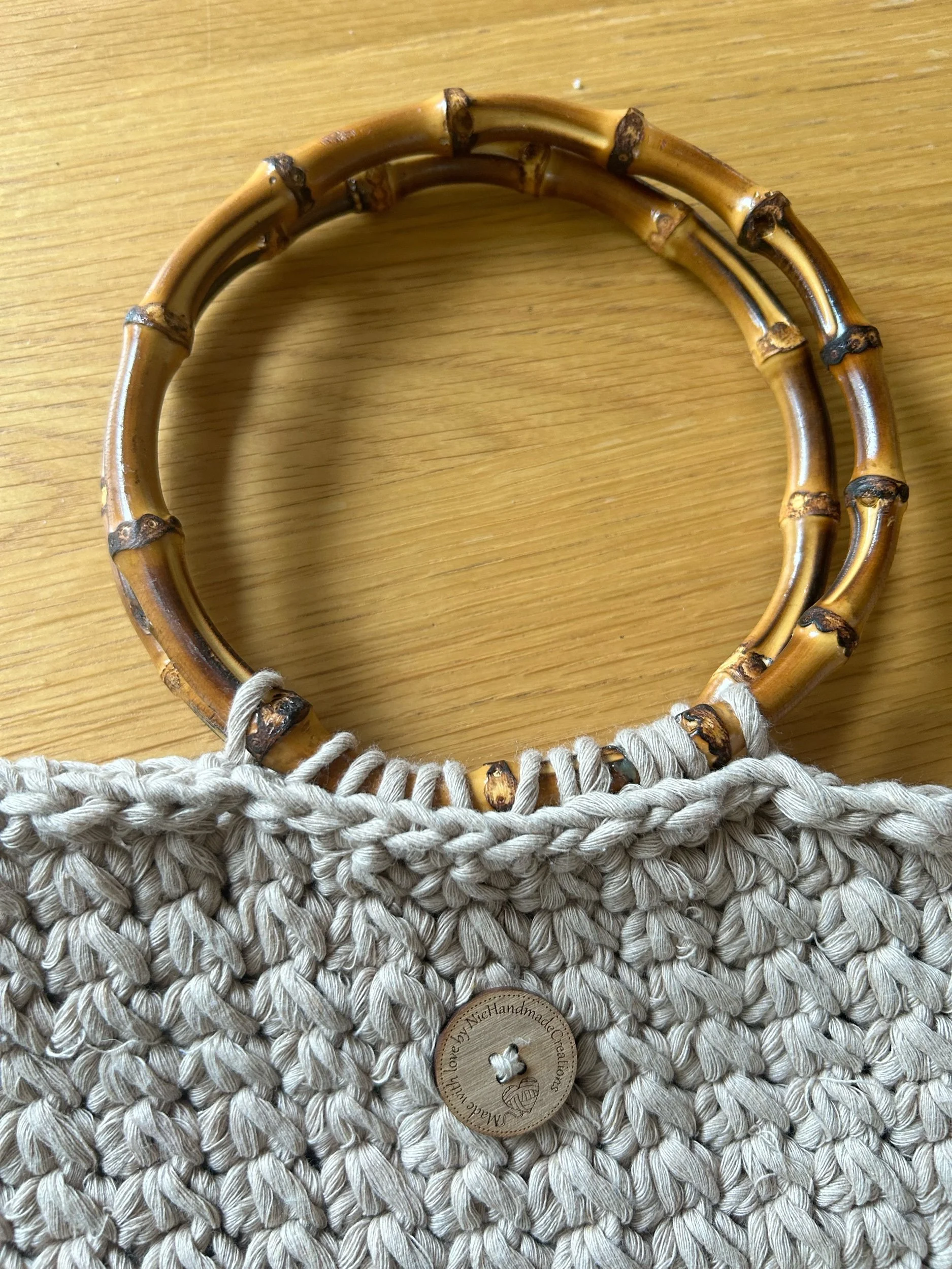Tan Crochet Handbag with Bamboo Handles